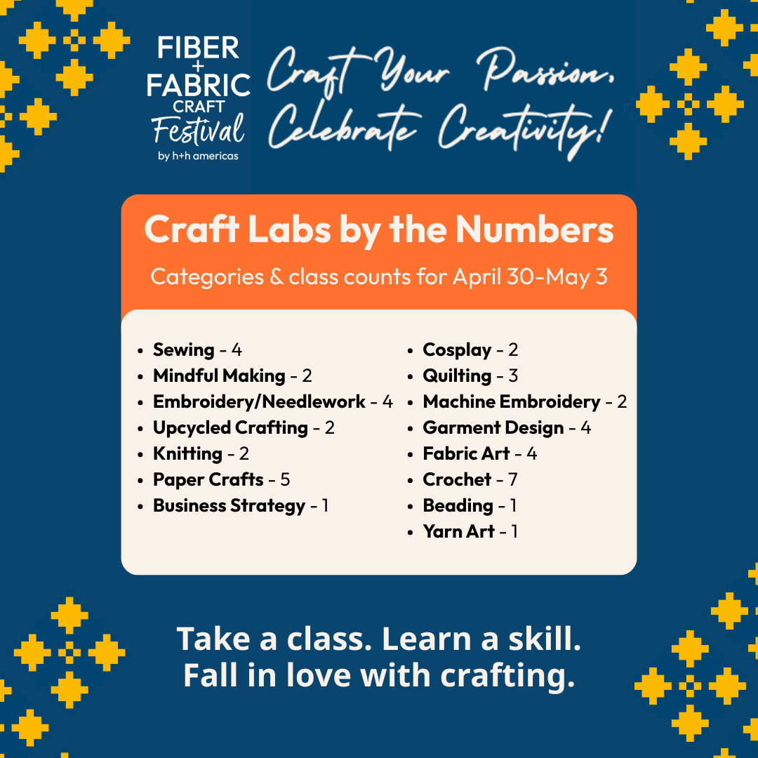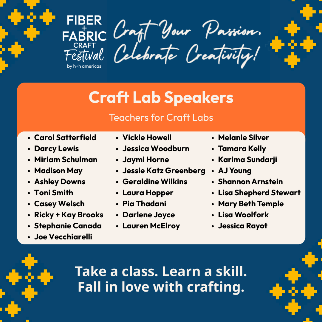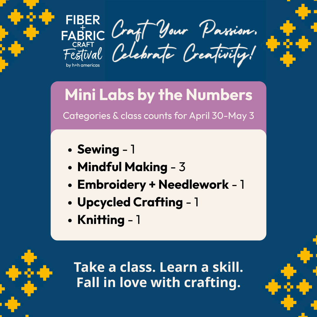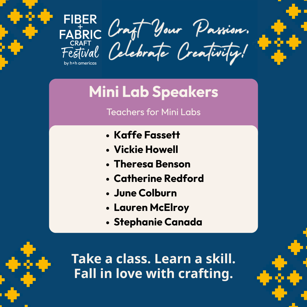 Each Mini Lab and Craft Lab has limited seating, so don’t wait to get your ticket to Fiber+Fabric Craft Festival and register for sessions today!