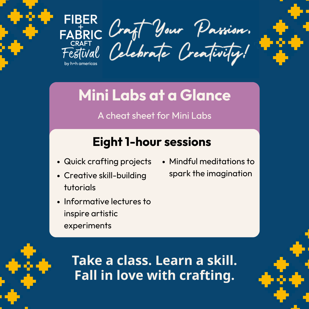 Let’s talk about everything you need to know about the “light bite” classes available at Fiber+Fabric Craft Festival: Mini Labs and Craft Labs!