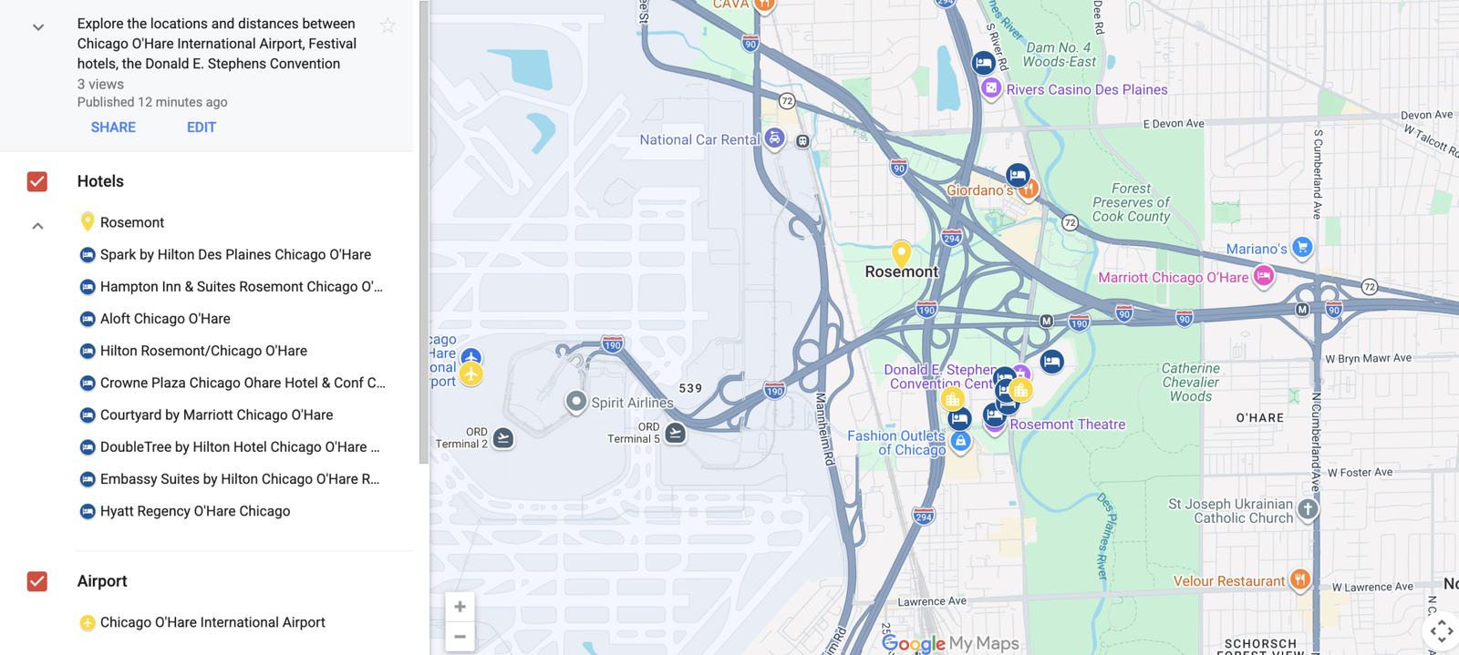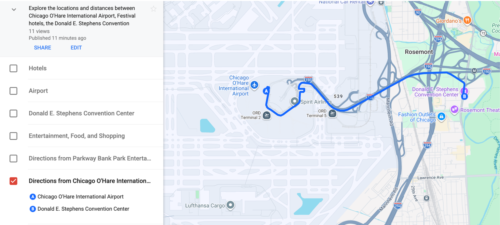- Driving between Chicago O’Hare International Airport and the Donald E. Stephens Convention Center