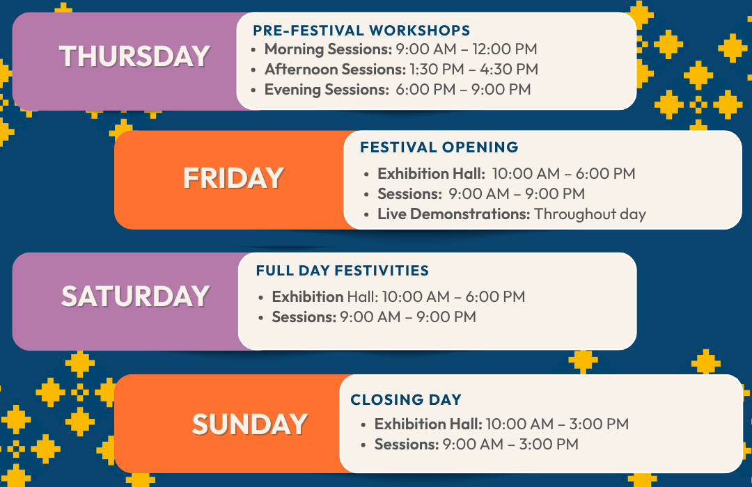 - Exhibition Hall: 10:00 AM – 3:00 PM